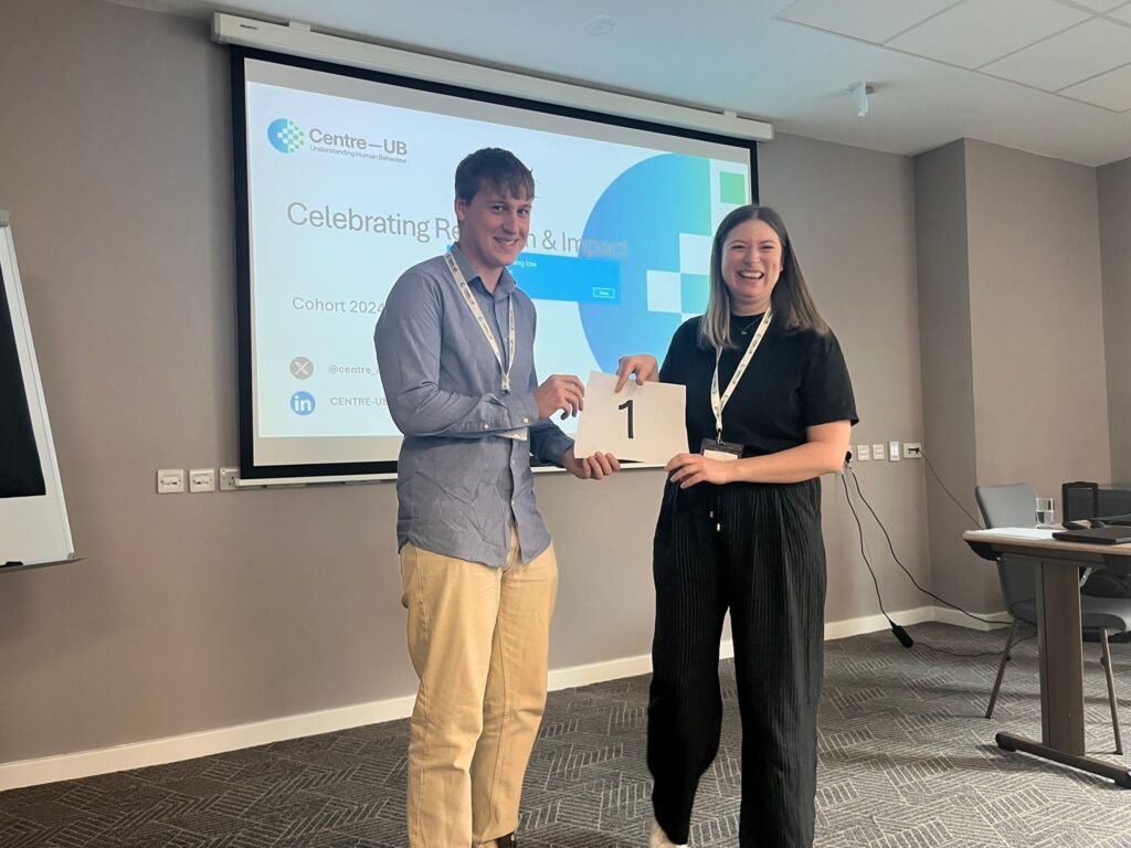 This week, Centre-UB held its first annual Celebrating Research and Impact event which showcased the many achievements of our 2024 cohorts of PhD students and Early Career Research Fellows. We were also joined by one of Behavioural Research UK (BR-UK)’s PhD students. Our students gave 5-min lightning talks on their PhDs while our fellows displayed the impact achieved this year through a poster. In collaboration with their partner organisations, the new behavioural insights being developed and the positive impact being achieved by this future generation of behavioural reseachers is broad and far-reaching.